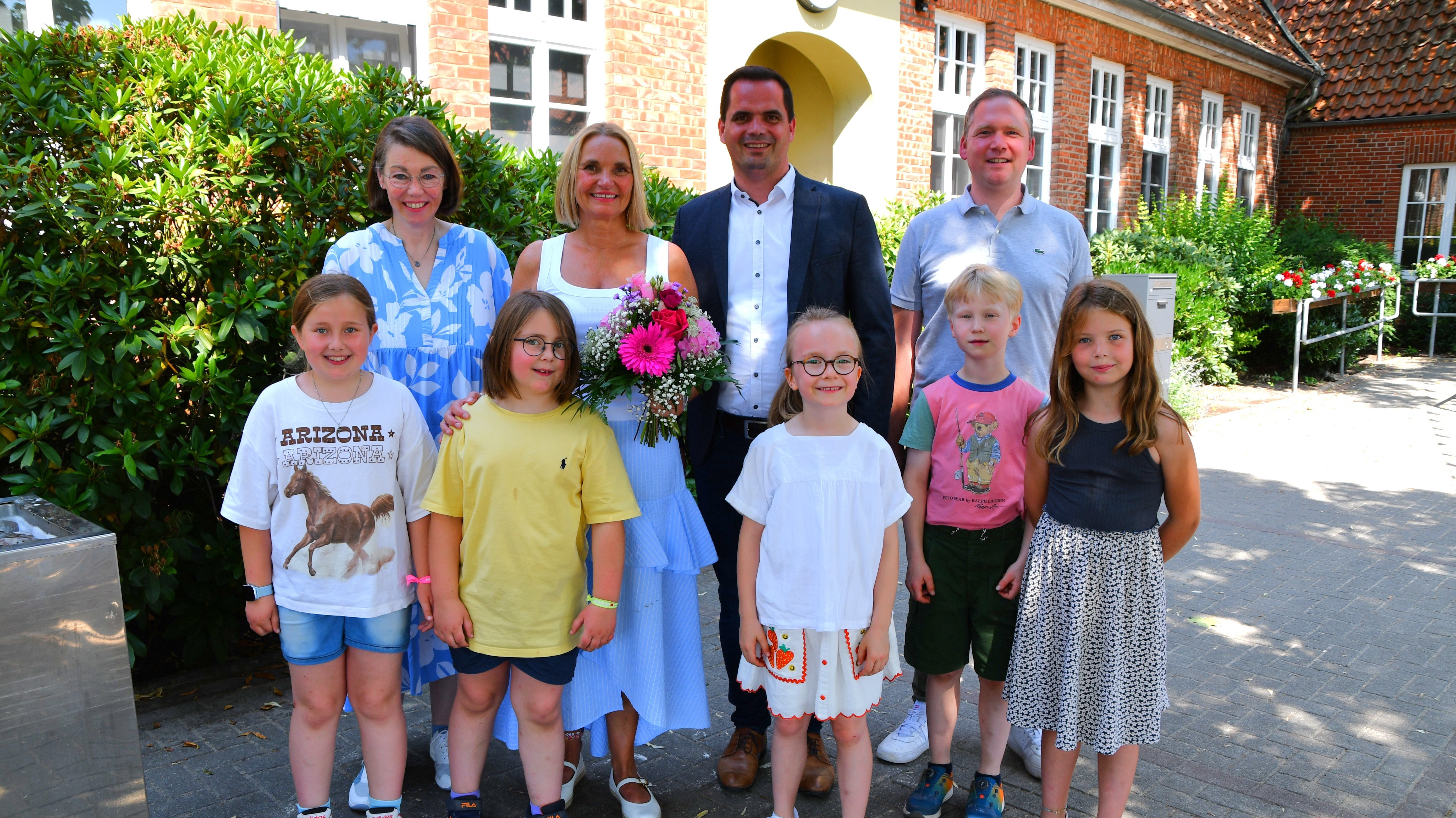 Alexandra Schmidt-Dürfeld hatte am Mittwoch (2. Juli) ihren letzten Schultag. Die Schulleiterin verlässt in den Sommerferien zum 31. Juli die Grundschule Hagen. Bürgermeister Kristian Kater, Vechtas Erste Stadträtin Sandra Sollmann und Fachdienstleiter Hendrik Lammers verabschiedeten sie persönlich und wünschten für die Zukunft alles Gute.