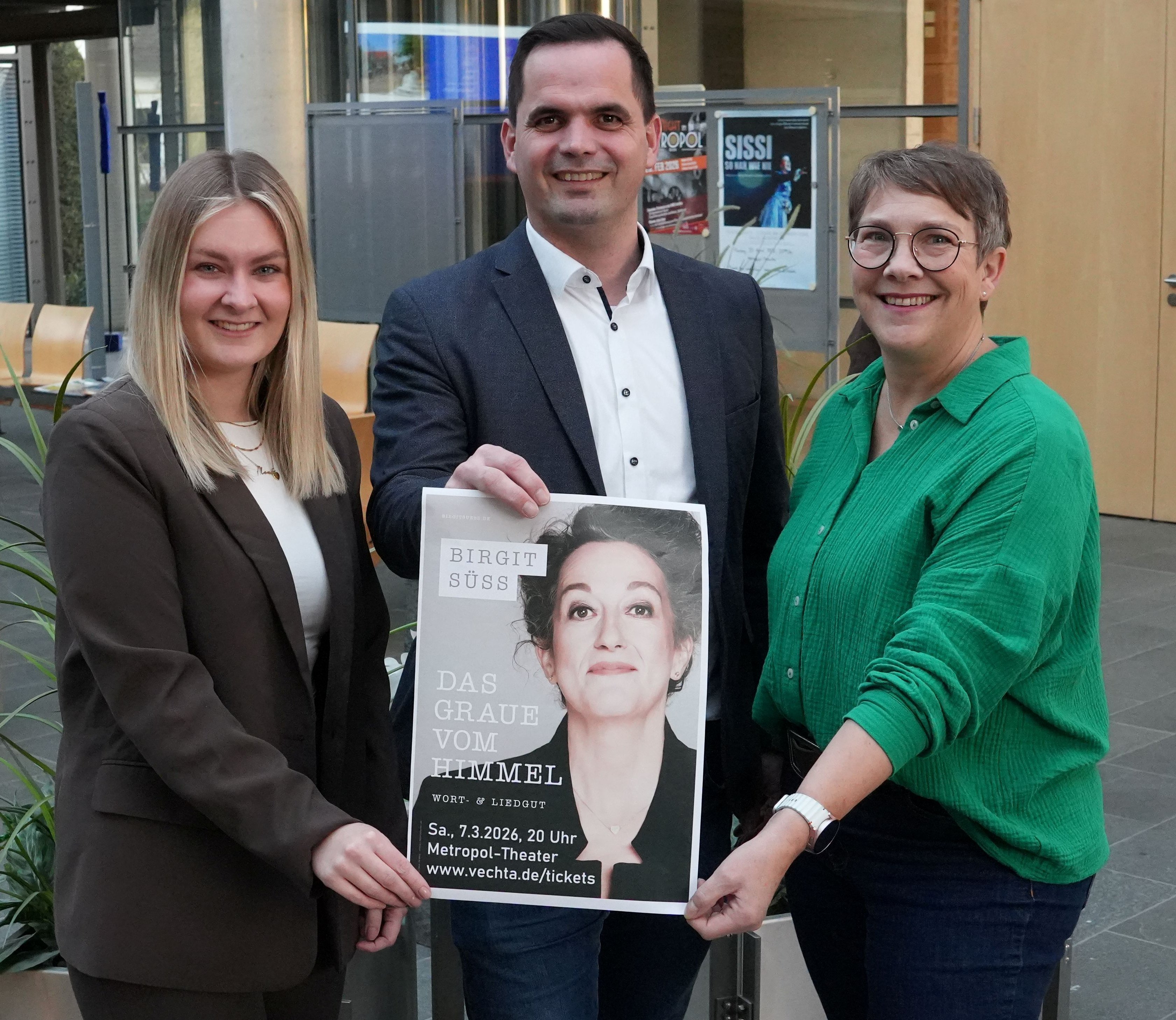 Hochkarätiges Kabarett ist am Weltfrauentag in Vechta Programm. Am 7. März 2026 (Samstag) setzt Birgit Süss diese Tradition fort. Die Sonderpreisträgerin des Deutschen Kabarett-Preises 2022 tritt mit ihrem neuen Programm „Das Graue vom Himmel“ um 20.00 Uhr im Metropol-Theater auf. Anlässlich des Internationalen Frauentages präsentiert die Künstlerin ein „Frauen spezial“ in Vechta.