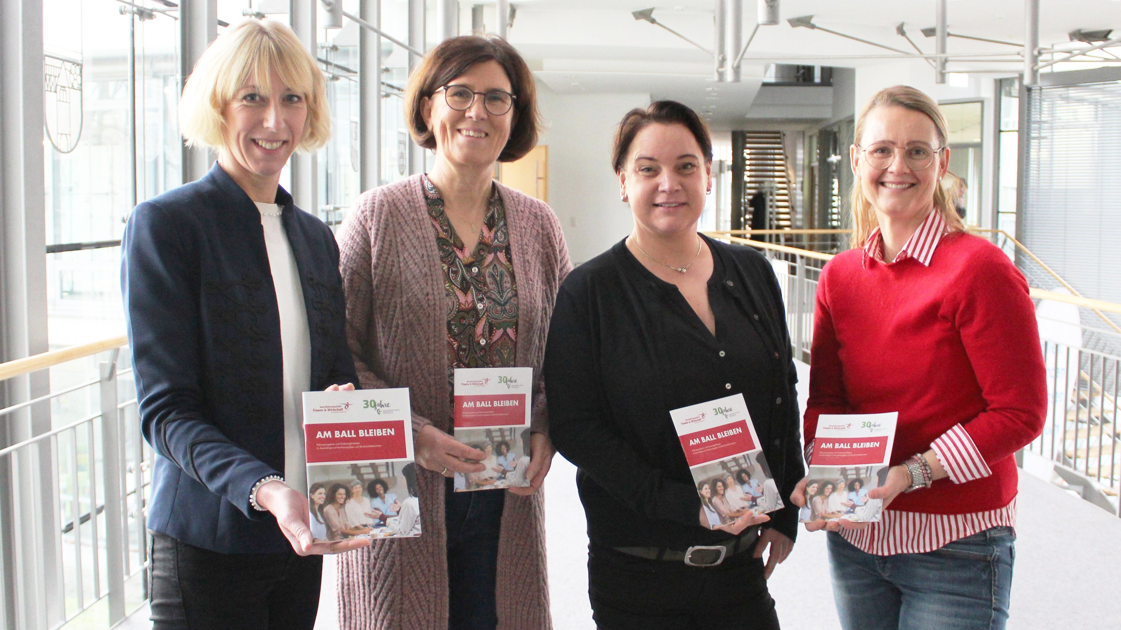 Die Koordinierungsstellen für Frauen und Wirtschaft im Oldenburger Münsterland präsentiert die neue und überarbeitet Broschüre „Am Ball bleiben“ für das erste Halbjahr 2024. „Uns war es wichtig, den äußerlichen Wiedererkennungswert der Broschüre bei zu behalten“, sagt Nancy Menke, pädagogische Mitarbeiterin der Koordinierungsstelle. Insgesamt sei die Broschüre jedoch ein wenig „schlanker“ geworden und biete durch den überarbeiteten Innenteil eine bessere Übersicht. Inhaltlich wurden allerdings keine Abstriche gemacht. Altbekannte Rubriken wie „Beruflicher Wiedereinstieg“ oder Angebote im Bereich „Familie und Beruf“ sollen weiterhin umfangreiche Möglichkeiten für Interessierte bieten.