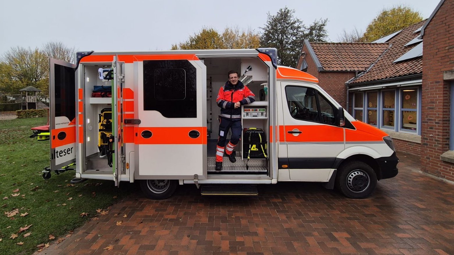 Florian Stolle ist am Donnerstag mit einem Rettungswagen zur Stadtkita Purzelbaum gefahren. Es gab zum Glück keinen Notfall. Florian Stolle macht in der Kita im Rahmen seiner Ausbildung zum Notfallsanitäter ein Praktikum. Er zeigte den Kindern, wie ein Rettungswagen des Malteser Hilfsdienstes von innen aussieht. Alle Gruppen durften nach und nach einen Blick in den Wagen werfen. Die Kinder durften Schubladen öffnen und die verschiedenen Dinge erkunden. Florian Stolle hat alles erklärt und viele Fragen beantwortet. Für die Kinder war das eine tolle Erfahrung.