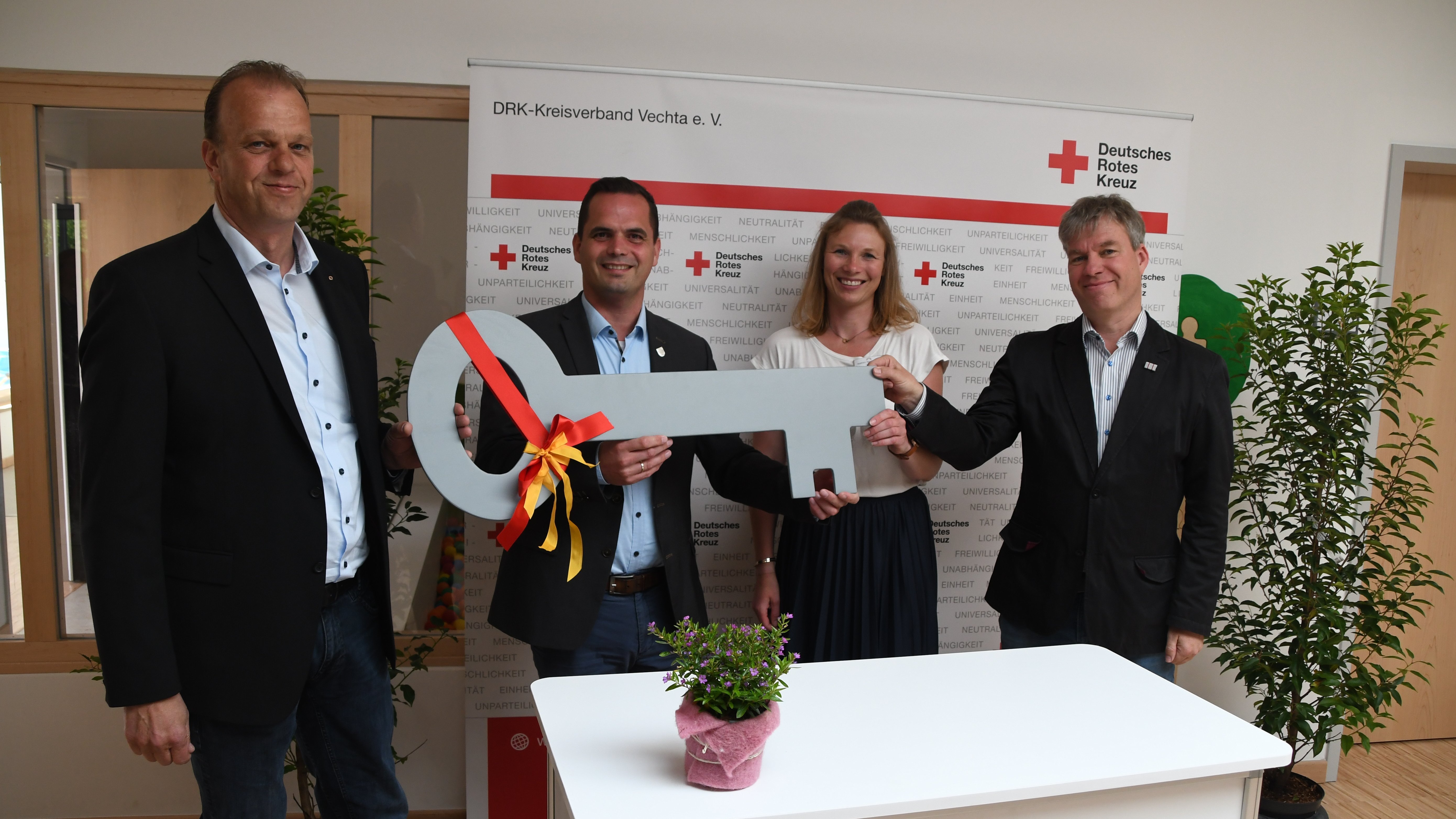 Bürgermeister Kater dankte dem DRK-Team um Leiterin Kathrin Wintermann dafür, diese Erweiterung übergangsweise ermöglicht zu haben. Die Stadt sehe den Bedarf für eine dritte Kita in Langförden und verfolge die Absicht sie zu bauen, so schnell es gehe. Das gehe nicht von heute auf morgen, sagte Kater. „Deshalb sind wir froh mit dem Deutschen Roten Kreuz einen flexiblen und zuverlässigen Partner zu haben.“