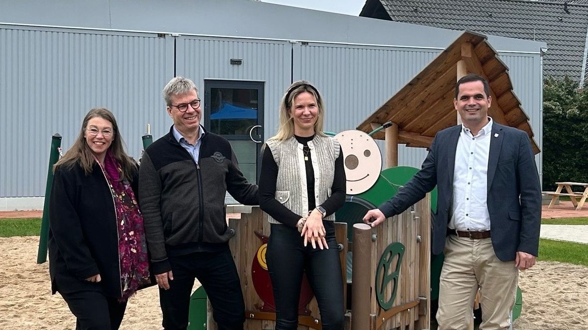 900.000 Euro hat die Stadt Vechta jetzt investiert, um in der Feldstraße einen zweigruppigen Kindergarten aufzubauen. Das Projekt konnte, beginnend mit dem politischen Beschluss bis zur Eröffnung, in nicht einmal 12 Monaten realisiert werden. Die neue Kita ist ein Provisorium aus fest verbauten Containern und bleibt mindestens so lange stehen, bis die geplante, größere Einrichtung auf dem alten Feuerwehr-Gelände an der Oldenburger Straße eröffnet wird. Betrieben wird die neue Kita vom DRK.
