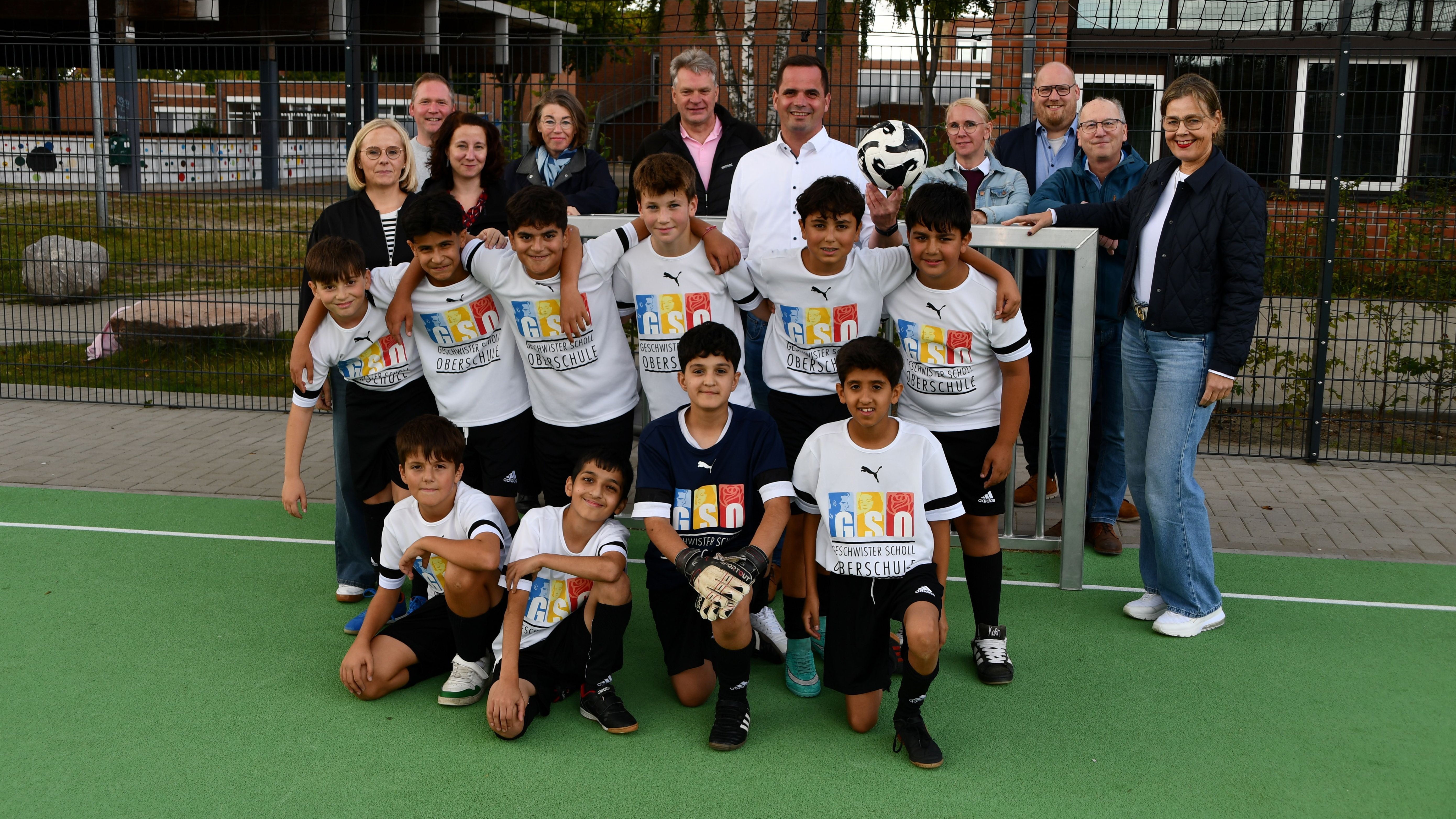 „Der Soccerplatz passt wie maßgeschneidert in das Förderprogramm“, sagte Bürgermeister Kristian Kater. „Sport verbindet Menschen. Und hier können vor allem Kinder und Jugendliche, aber auch Erwachsene auch außerhalb der Schulzeit zusammen Fußball spielen. Ich wünsche mir, dass der Platz rege genutzt wird.“ Das Kleinspielfeld ist öffentlich zugänglich und auch nach Schulschluss geöffnet. Zur Eröffnung trug ein Team der GSO ein kleines Match aus.