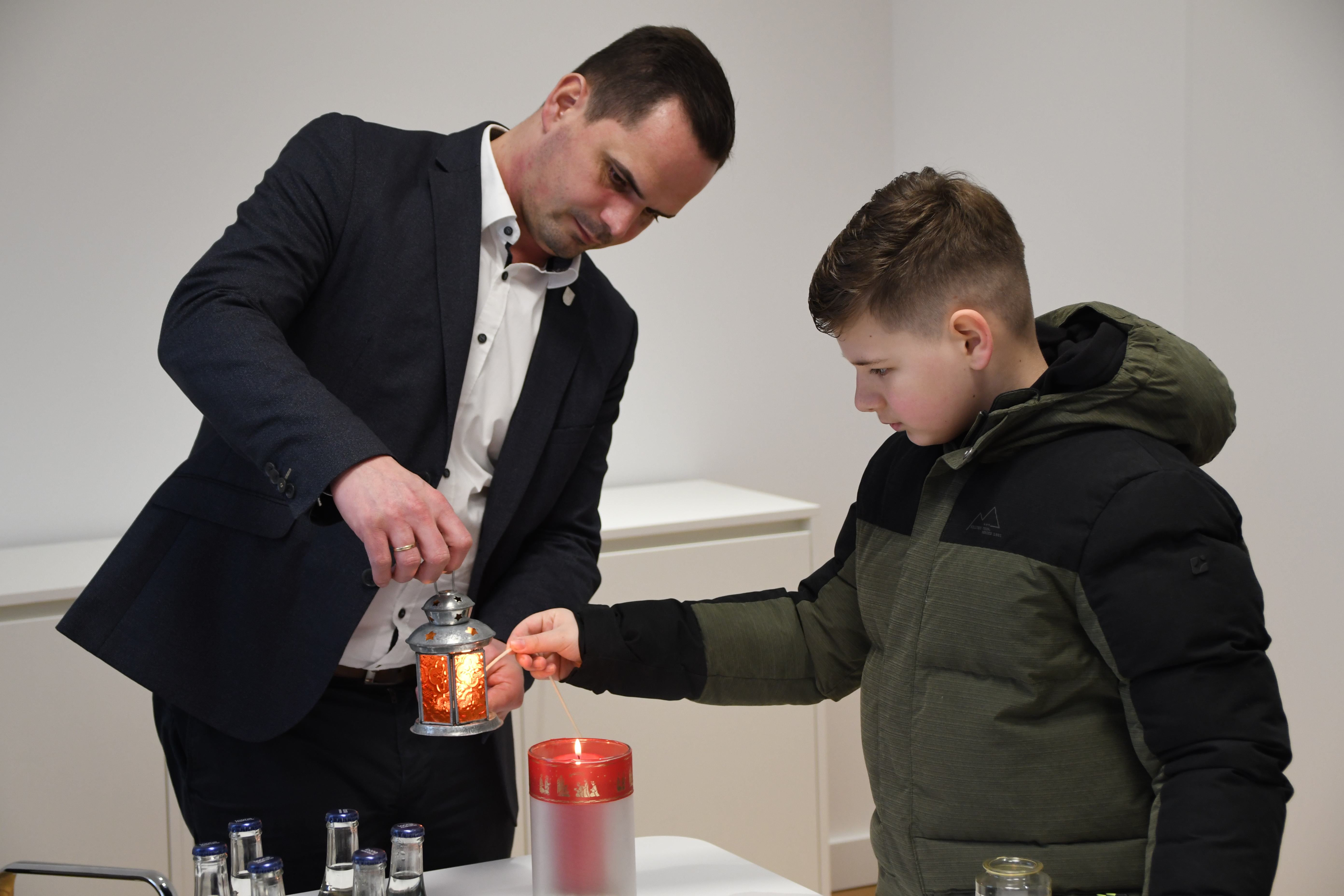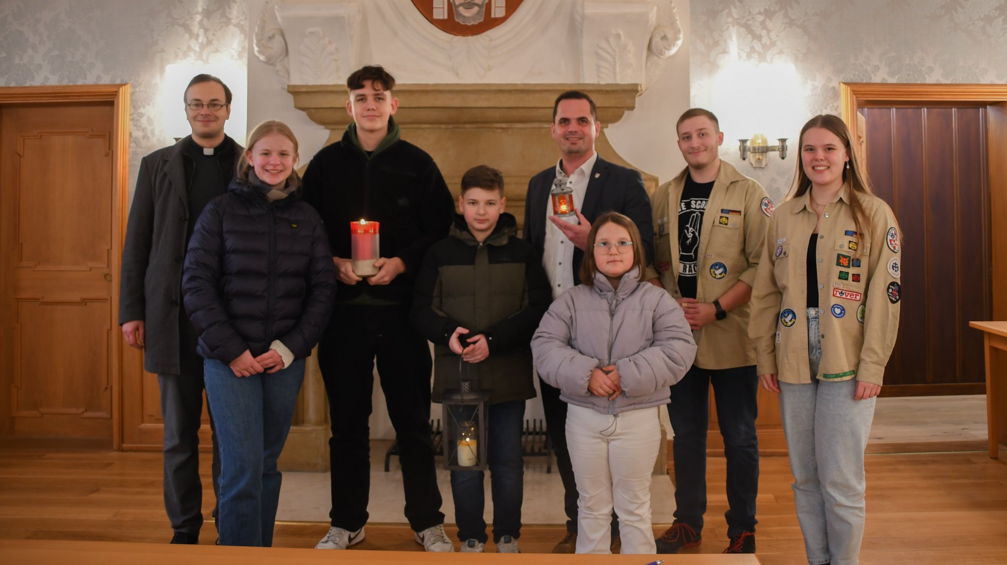 Das Friedenslicht aus Bethlehem befindet sich erneut im Rathaus der Stadt Vechta. Die Pfadfinderinnen und Pfadfinder der Deutschen Pfadfinderschaft St. Georg Stamm Füchtel und Stamm Vechta-St.Georg haben am Mittwoch (20. Dezember) das Friedenslicht Bürgermeister Kristian Kater übergeben. „In der heutigen Zeit ist es wichtiger denn je, dass das Friedenslicht umgeht“, sagte Bürgermeister Kater. Die Pfadfinder beschrieben bei der Übergabe den langen Weg, den das Licht in den vergangenen Tagen zurückgelegt hatte.