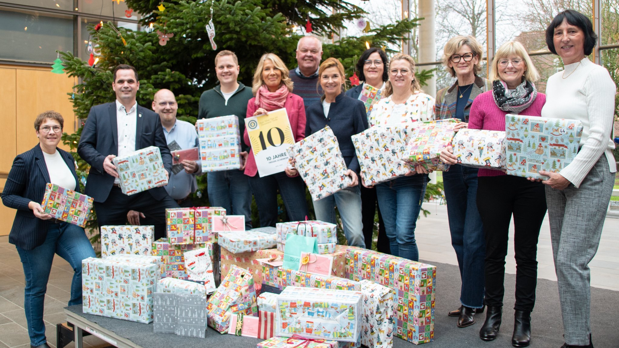 Der Inner Wheel Club Vechta macht dieses Jahr zum zehnten Mal in Zusammenarbeit mit der Stadt Vechta Kindern eine Freude. Die Mitglieder überreichten am Donnerstag (19. Dezember) Bürgermeister Kater und Andrea Schlärmann vom Familienbüro Geschenke für 47 Kinder mit einem Gesamtwert von etwa 2300 Euro. Diese wird das Familienbüro an bedürftige Familien in Vechta verteilen. Die Kinder konnten bereits im Vorfeld Wunschzettel ausfüllen.